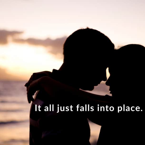 Vous prendrez « contenu » et vous découvrirez qu’il y a de la sagesse dans ce choix. Vous et votre partenaire n’êtes peut-être pas considérés comme quelque chose de très spécial aux yeux des autres mais dans votre petit monde privé vous êtes les seules personnes que vous connaissez qui sont faites l’une pour l’autre.